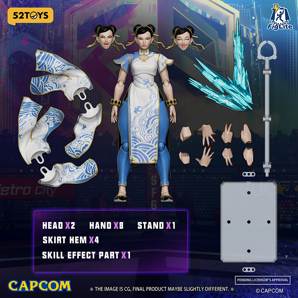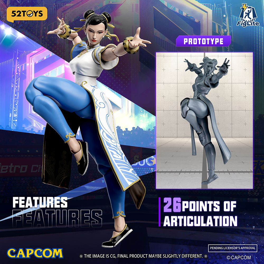 52Toys new Figlite 1/12 scale Street Fighter 6 Chun Li action figure features 26 points of articulation and game accurate detail.
