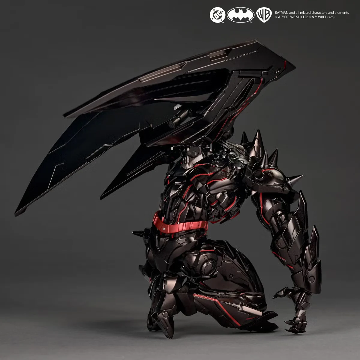 Batman in the “Hellbat” suit, created to battle Darkseid, the DC Universe’s most powerful enemy, joins the Amazing Yamaguchi line! The armor, forged by the Justice League through the combined powers of their special abilities, features a deep, glossy black finish with metallic red accents representing the energy emanating from within.