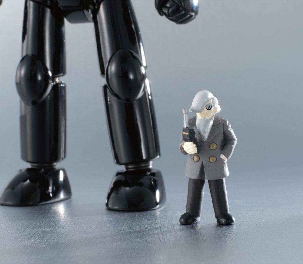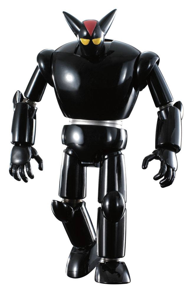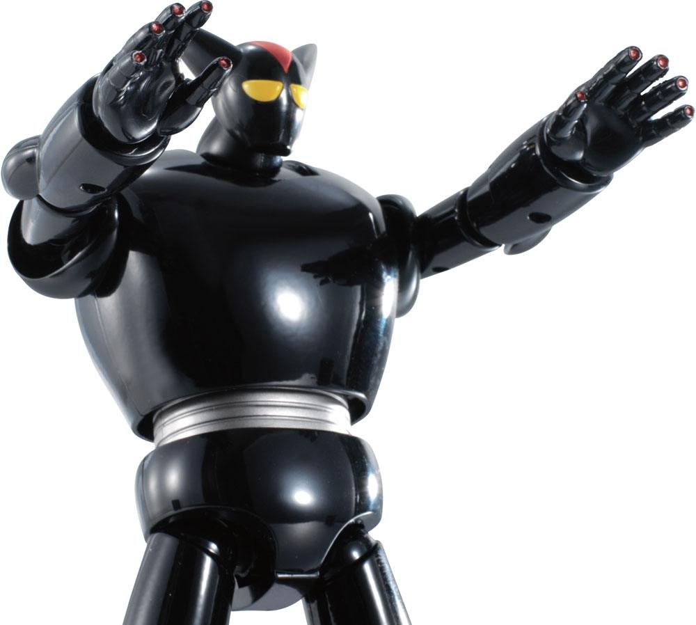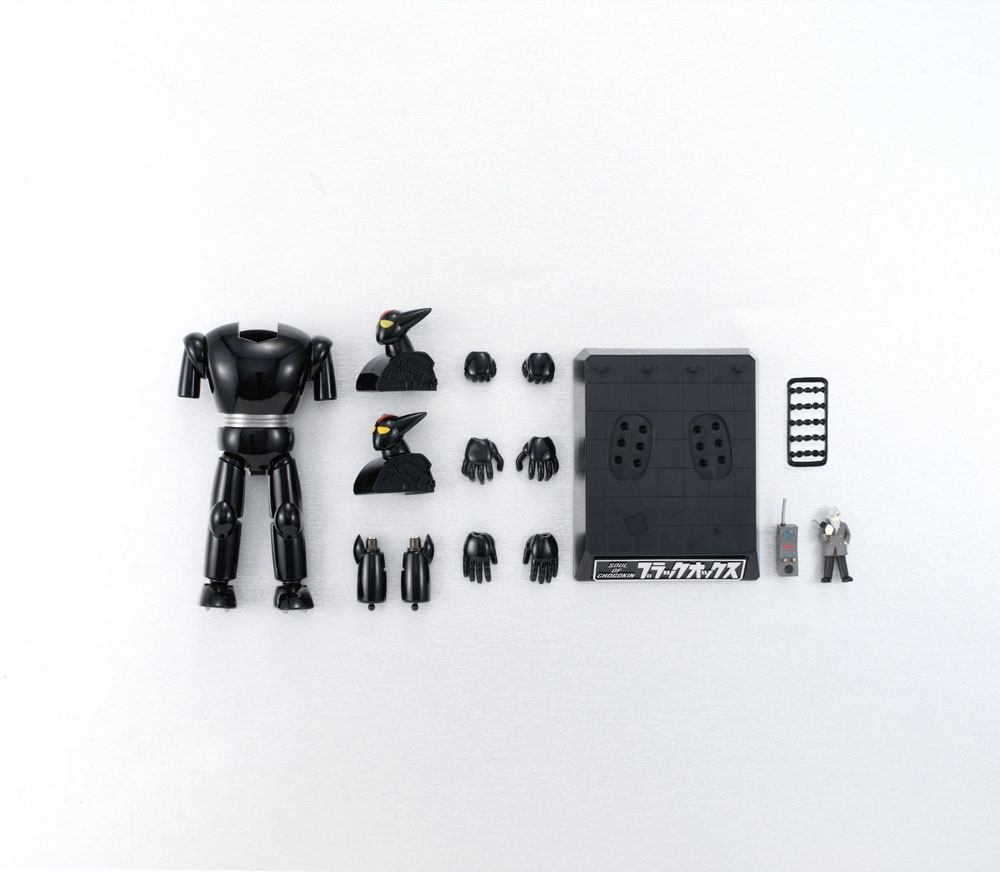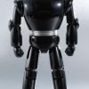 The powerful rival and partner of Tetsujin 28, Black Ox, rejoins the Soul of Chogokin series in a renewed edition! Internal LEDs illuminate his eyes, and enhanced neck articulation allows for even more natural poses. It also includes “damaged” head parts to let you replicate the dynamic scene in the comics where Black Ox fights alongside Tetsujin 28. Also includes figures of Dr. Franken, his creator, and Professor Shikishima, who pilots Black Ox to save Tetsujin. Pose it alongside Soul Of Chogokin GX-24R TETSUJIN 28 (sold separately) to re-create the dynamic duo! The set includes two pairs of optional hands, a damaged head part, two figures (Dr. Franken and Dr. Shikishima), a display stand and two LR44 batteries.