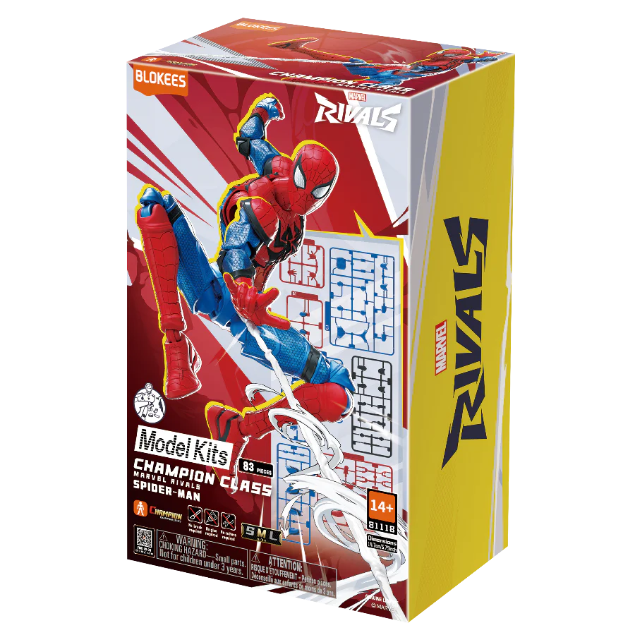 Marvel Rivals Champion Class 06 Spider-Man Model Kits brings Spider-Man to life in an upgraded 5 3/4-inch scale with a refined pre-painted finish. Featuring 83 pieces and 42 points of articulation, this officially licensed collectible supports dynamic, game-inspired poses with fluid movement and cinematic presence. With web gauntlets, interchangeable hands, and a web-shooting effect, the set captures Spider-Man in motion—bringing iconic in-game moments into a display-worthy form designed for collectors and fans alike. Ages 14 and up.