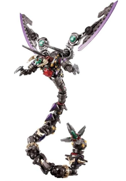 The powerful final form mode, which is composed of huge wings / destructive weapons and limb unit parts, realizes a volume that surpasses the first series, Waruder Legion Ripper. The maximum height in the final form is about 21 cm, and the maximum width is about 38 cm. The total height can be changed by connecting patterns of units such as hands and feet, and it is possible to create various enemy mecha that correspond to various Diaclone machine sizes.