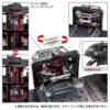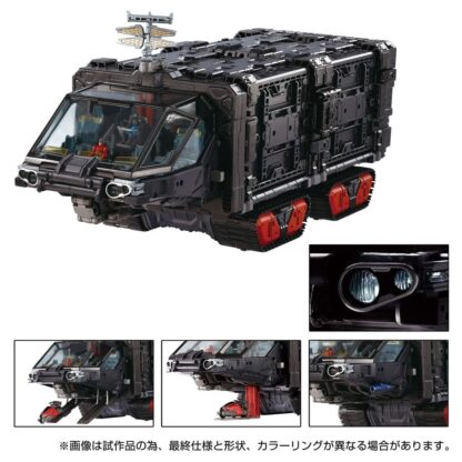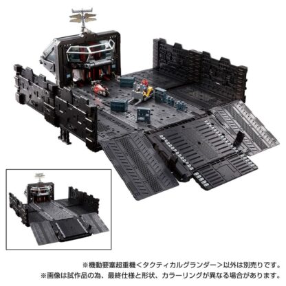 The Diaclone TM-33 Tactical Mover Fort Panzer features the usual high level of detail you would expect from a Takara Tomy Diaclone product. The Tactical Mover splits into a mobile repair bay featuring ports for additional add on’s ( sold separately ) The cockpit features multiple levels of seating including a reverse viewing bay.
