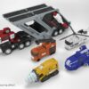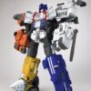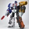 This fully articulated figure can transform from a semi with a trailer into a robot and back again. Once in robot form the figure can be combined with the four transformable drone vehicles to form the Energy Commander. The drone vehicles are interchangeable and can be combined with the main figure in several different configurations. The trailer itself can transform into a base and a battle station that can be used with the included mini robot.