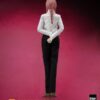 FigZero 1/6 Makima stands approximately 11 inches (28 cm) tall. She is a fully-articulated collectible figure with approximately 32 points of articulation and an incredible head sculpt. The primary materials for the figure are ABS, PVC, POM, and fabric. The braid at the back of her head is made of soft PVC with metal wire inside for action poses.