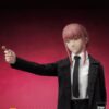 Makima includes two interchangeable faceplates that can be exchanged between a standard expression and an ominous expression and six sets of interchangeable hands, including her ritual-pose hands which perfectly replicate the iconic scene revealing Makima’s grisly abilities. Furthermore, the figure comes with a beer mug, a beer piece to be placed inside the mug, and a candy lollipop. The character’s Public Safety Devil Hunters uniform includes a white shirt, a pair of slacks, a necktie, and an overcoat, which are all made of fabric. The overcoat has a metal wire sewn inside the hem for expressive poseability.