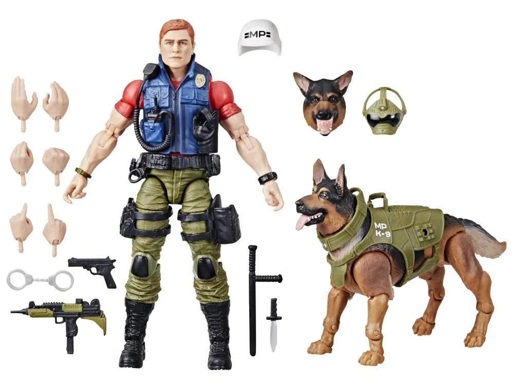This Christopher “Law” Lavigne & Order figure pack contains 14 character-inspired accessory pieces including 6 alternate hands for dog command signals, nightstick, handcuffs, helmet, knife, and weapon accessories. K-9 Order includes both a “good boy” head and alternate growling head, goggles, removable collar and harness.