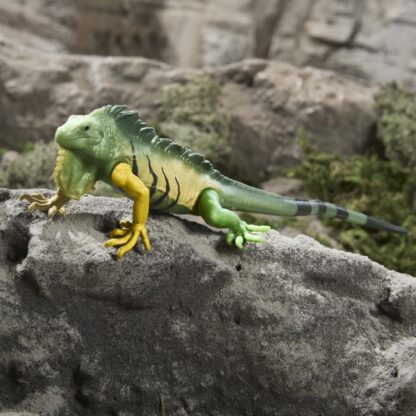 This Cobra Commander With Combat Armor figure contains 7 character-inspired accessory pieces including an alternate head to switch between human and serpent, 3 alternate hands, backpack, pet iguana “Serpentor,” and weapon accessory.
