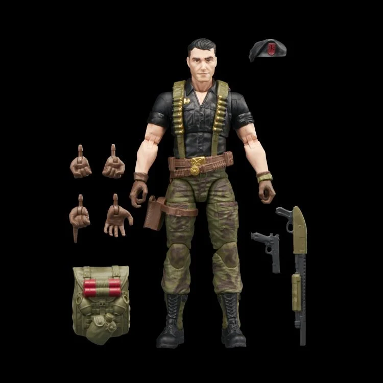 This Flint figure contains 9 character-inspired accessory pieces including removable beret, 4 alternate hands, backpack, weapon accessories, and figure stand.