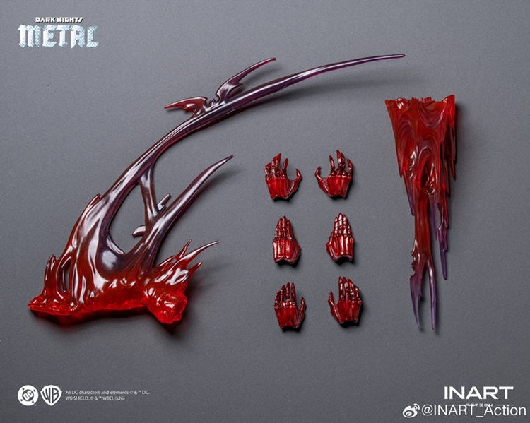 This INART Twelfth Scale Figure is officially licensed by Warner Bros. Discovery. The design of the INART Action Batman: The Red Death Action Figure pays homage to the character’s twisted origin with strong automotive influences across the design: Streamlined, glossy red armor shaped like a car’s shell; a chest plate that looks to have been crushed and reformed, creating a distorted shaping with vehicular influences; as well as a back inspired by muscle-car vents and cooling systems. Subtle mechanical structures beneath the torso hint at a powerful internal engine within this speedster. Unstable Speed Force energy ripples through the Red Death’s body, leaving only a trail of lightning and crimson bats behind.