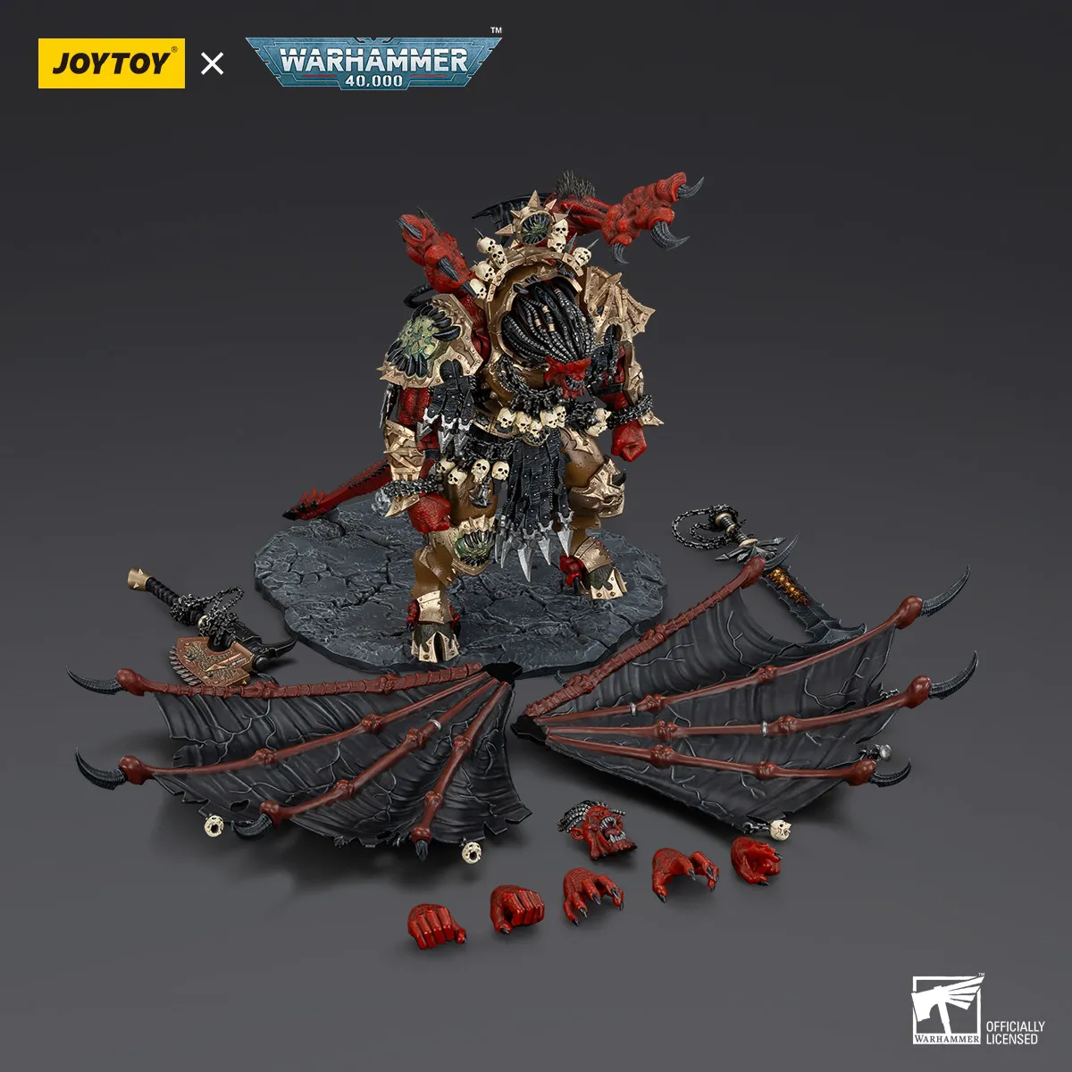 Raised in the deadly gladiatorial pits of Nuceria as an enslaved fighter, the former Primarch Angron was augmented with the dreaded “Butcher’s Nails” before being rescued and returned to the Emperor’s side. Seething with hatred towards the Emperor for failing to rescue his brethern in the arenas, Angron was amongst the first to turn to Chaos once his brother Horus began his unholy crusade. Transformed into a Daemon Prince, he brings upon the Imperium of Man nothing but savage butchery and death as he falls upon the galaxy like a plague in the service of the Chaos God, Khrone.