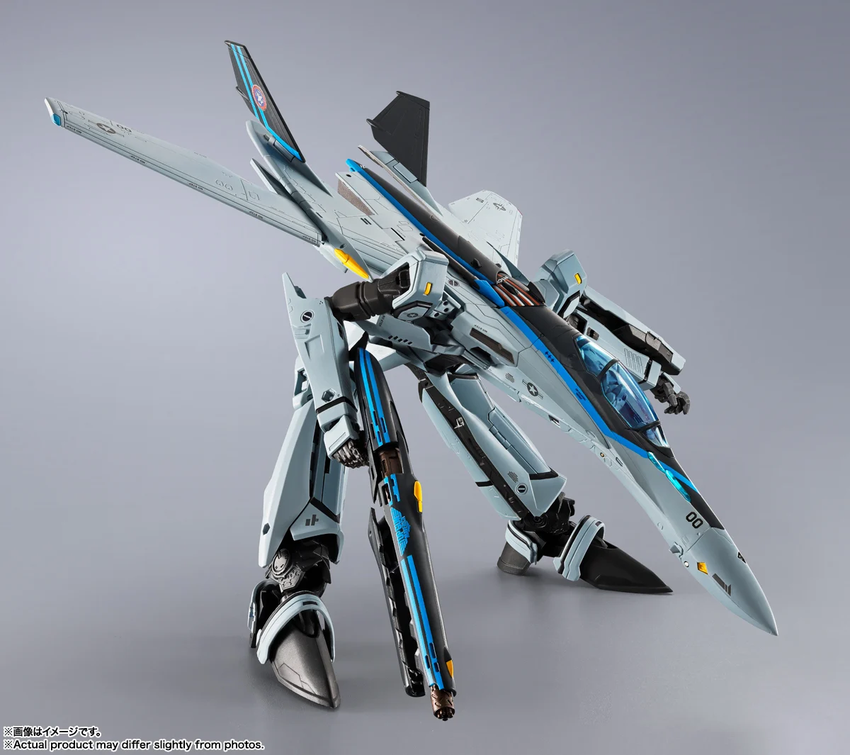 Standing approx 9.84 inches tall in robot mode this special Macross X Top Gun VF-25 features Pete ” Maverick ” Mitchells signature helmet design and jet colours. Transforming from Battroid to fighter and back again the VF-25 is made from ABS, PVC and die-cast construction.