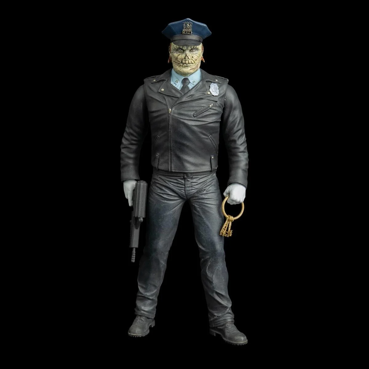 Includes: Maniac Cop 8″ Scale Figure with alternate head sculpts, nightstick with removable blade, revolver, machine pistol, and keys on ring.