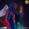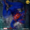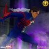 The One:12 Collective Spider-Man 2099 wears an Unstable Molecules suit, a material created by Sue Storm and Reed Richards of the Fantastic Four. The suit features a web cape with integrated posing wire, spiked forearm gauntlets, and raised chest insignia. The web-slinger features three head portraits – masked, partially unmasked, and a fully unmasked Miguel O’Hara portrait.