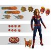 The One:12 Collective Captain Marvel figure features 3 head portraits with the likeness of Brie Larson. One masked head features glow-in-the-dark eyes, highlighting her superpowers. Captain Marvel is accompanied by her space-travel companion and pet cat, Goose.