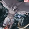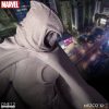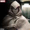 The One:12 Collective Moon Knight is presented in a fitted suit with 3D crescent insignia and removable hoods. The mystically-enhanced vigilante comes complete with two head portraits and a range of combat weapons including a crescent blade, staff, nunchucks, and a grappling hook baton.