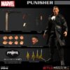 The One:12 Collective Punisher includes two head portraits capturing Frank Castle’s intimidating demeanor as portrayed by Jon Bernthal. Outfitted in a leather-like overcoat and armored vest with skull insignia, he comes complete with an arsenal of weapons, true to the Punisher’s menacing reputation.