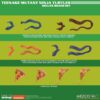 The TMNT each wear their respective, interchangeable colored masks and include real soft good utility belts and harnesses that can hold their signature weapons. Students of ninjitsu, the Turtles prepare to take down Shredder and the Foot CLAN, equipped with an arsenal of ninja weapons like shuriken, sai, kunai, katanas, tonfas, push dagger, and a bo staff. If that wasn’t enough, they include additional alternative cloth goods and more!