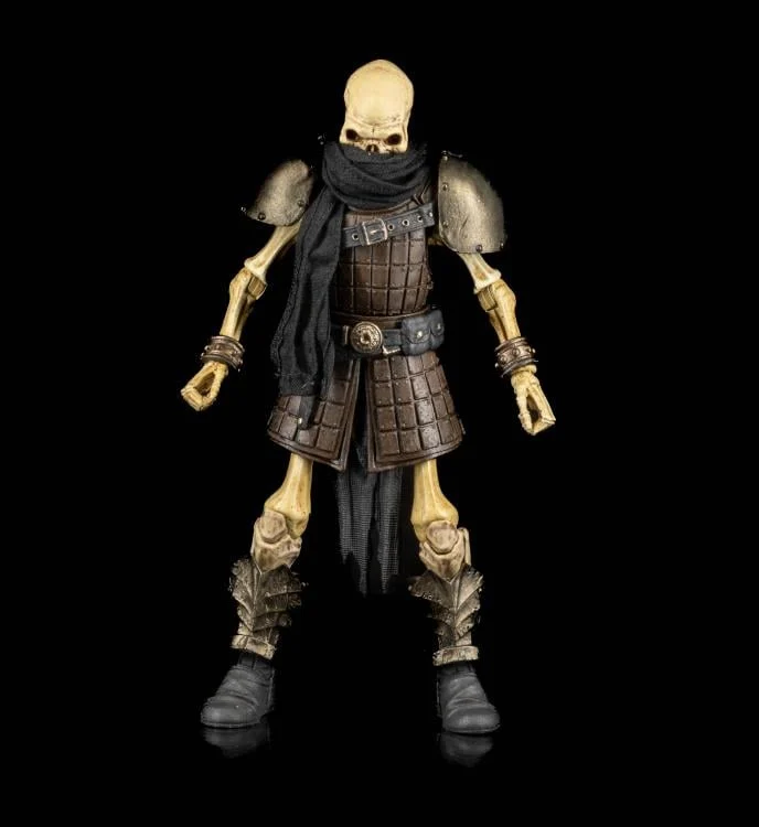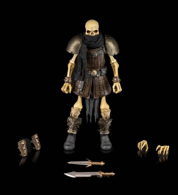 Enhance your Mythic Legions: The Roleplaying Game campaigns with the Mythic Legions: The Roleplaying Game Rix the Skeleton Thief action figure! Standing at 7 inches tall, this figure has full articulation with the Legions Build System, making it possible to swap parts with other Legions figures to create new looks and brand new characters. This figure comes with an additional pair of hands, 2 forearm armor, a dagger, and a sword