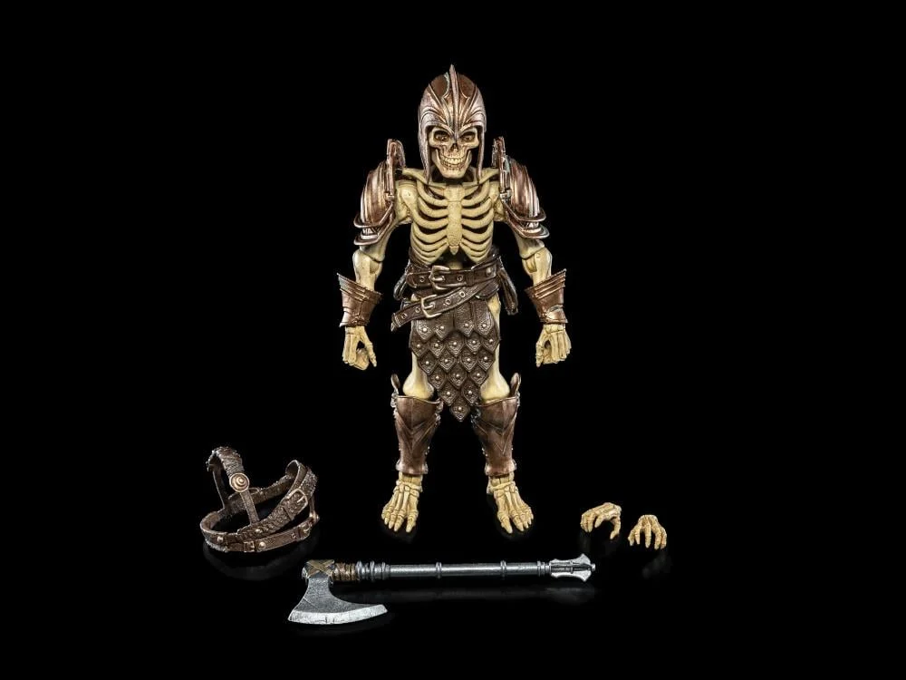 Enhance your Mythic Legions: The Roleplaying Game campaigns with the Mythic Legions: The Roleplaying Game Skeleton Fighter (Enemy) action figure! Standing at 7 inches tall, this figure has full articulation with the Legions Build System, making it possible to swap parts with other Legions figures to create new looks and brand new characters. This figure comes with an additional pair of hands, a belt, and a battle axe
