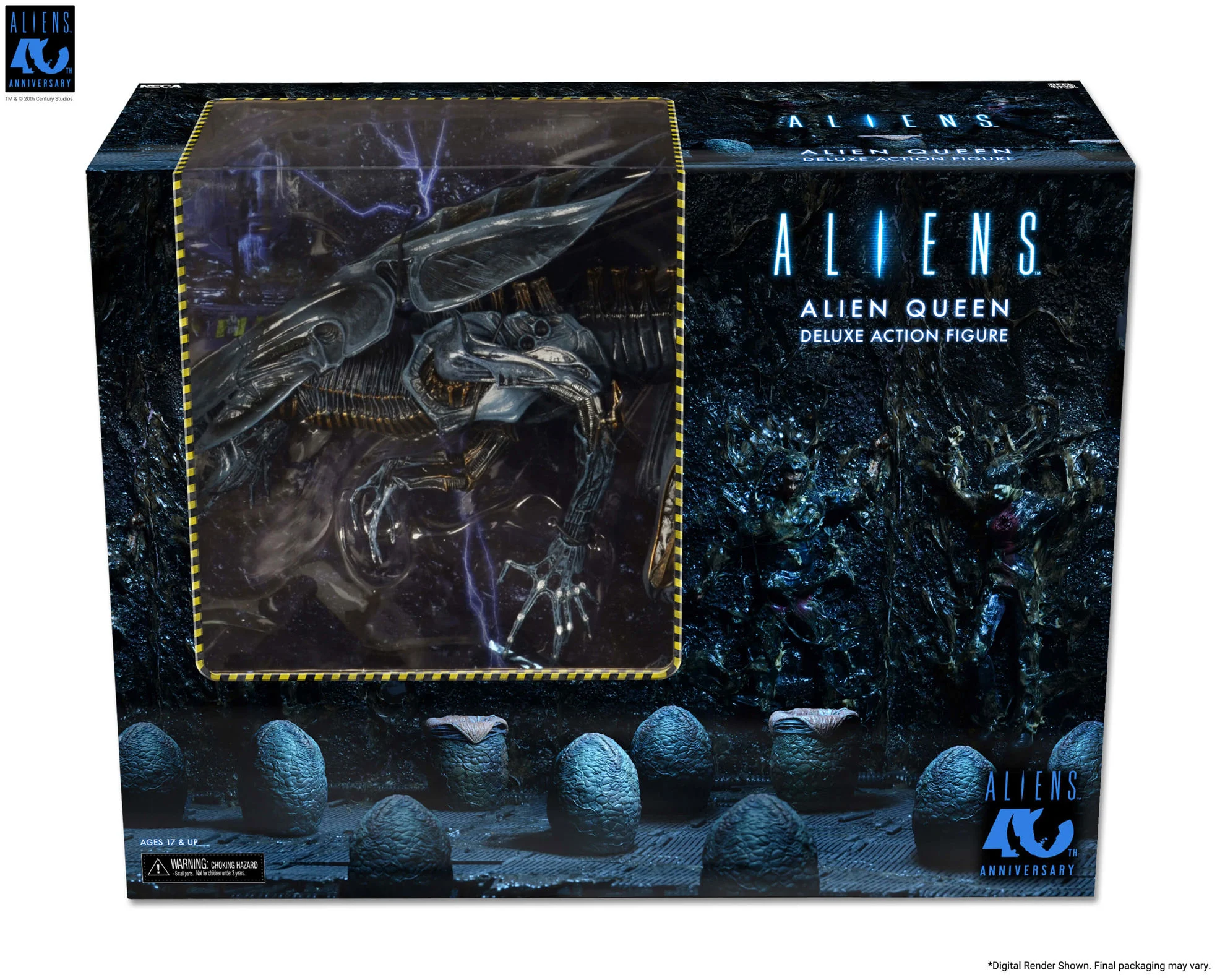 NECA’s most massive and most ambitious Aliens figure ever is the terrifying Alien Queen from the 1986 Aliens film. She stands over 15 inches tall and is over 30 inches long with over 30 points of articulation, including a spectacular poseable tail.