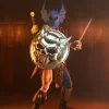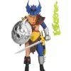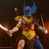 Featuring a retro paint deco, evil mercenary Warduke fights for coin with a fearsome set of weapons – longsword with attachable flame effect, short sword, dagger, and skull shield. This 50th Anniversary Warduke action figure comes on blister card packaging that is a tribute to the original release.