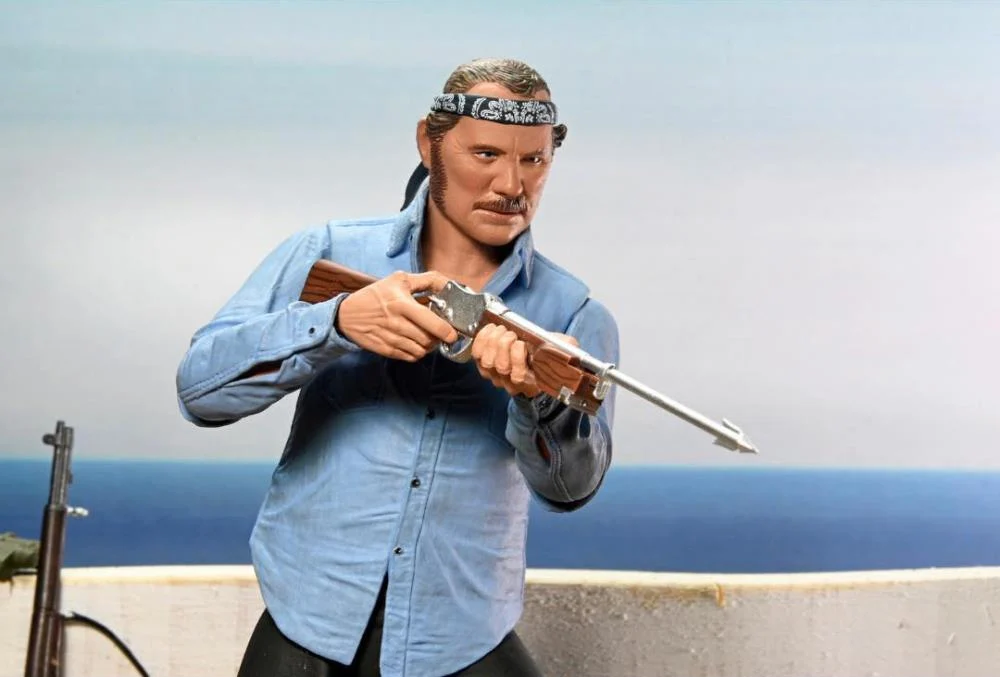 The iconic character Sam Quint is now available as an Ultimate action figure. The headstrong captain of the Orca hunts the shark until his hubris leads to his bloody demise. Standing in 7-inch scale, the figure includes multiple interchangeable heads, hands, and arms for an alternate look. Plus, gloved hands, machete, can, crushed can, rifle, and harpoon gun.