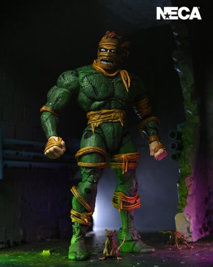 Enter the Rat King! Based on the classic Teenage Mutant Ninja Turtles comic books from Mirage by Kevin Eastman and Peter Laird, this iconic antagonist is ready to join your NECA action figure collection! Standing in 7-inch scale, this rodent overlord includes two different heads to capture different looks, removable leg wraps, regular hands, monster hands, pet rat accessories, and a stick! Comes in collector-friendly packaging with original box art by Kevin Eastman.