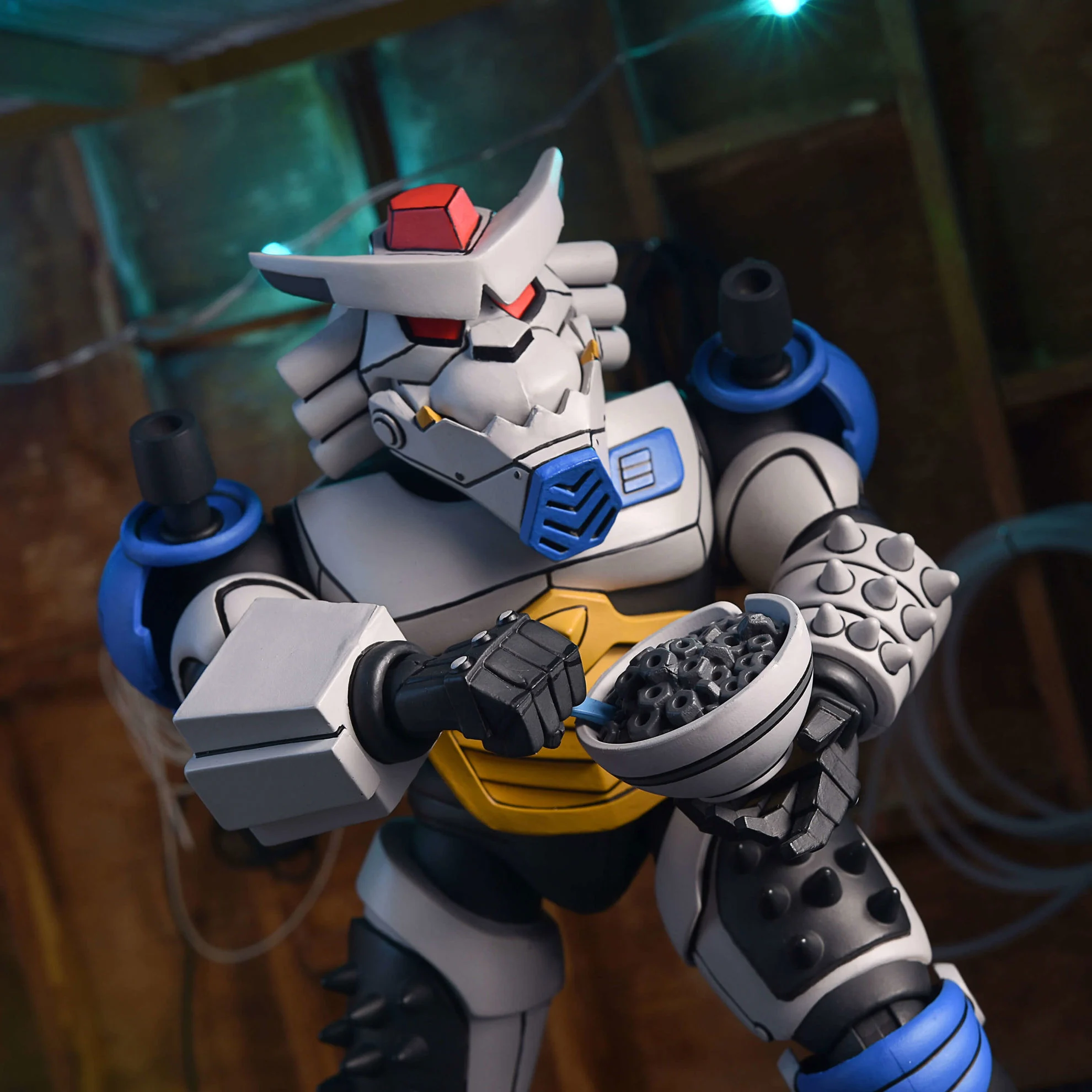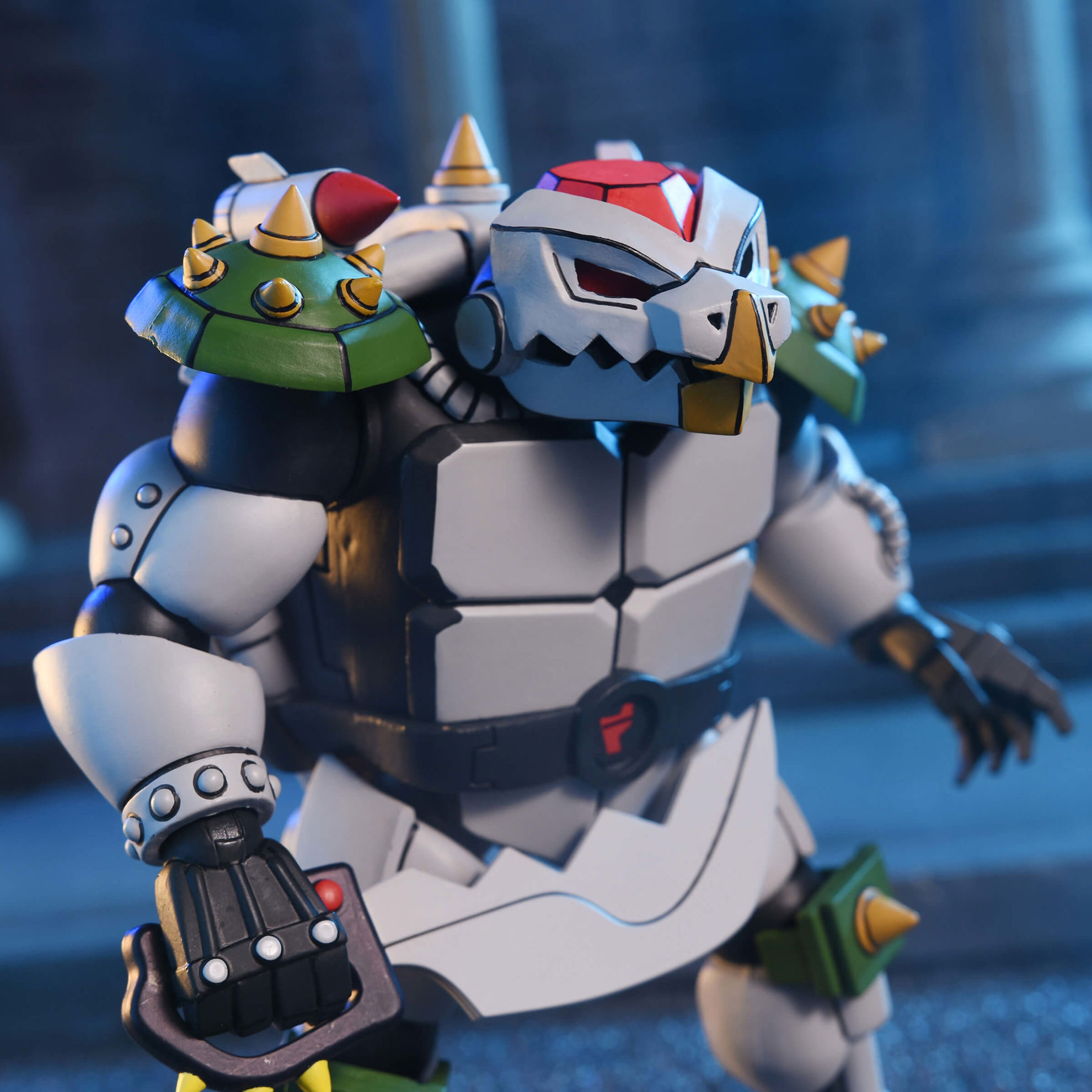 Inspired by the classic 1980s Teenage Mutant Ninja Turtles cartoon series! They may look like they just stepped off the screen, but they didn’t! These “what if” style characters were designed by SNZ Toys, and they’re great additions to your already massive NECA TMNT cartoon collection. These 7-inch scale Robo Tokka and Rahzar action figures feature hinged jaws and come with interchangeable hands, cyber saber, mecha mace, microchip snack, and a healthy bowl of nuts-and-bolts cereal! Presented in collector-friendly window box packaging.