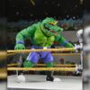 A first-time figure straight from the pages of Eastman and Laird’s Teenage Mutant Ninja Turtles Adventures comic book series from Archie Comics! This 7-inch scale Stump Wrestling Leatherhead action figure by NECA features a hinged jaw to chomp the champ and a bendy wire tail to bash turtle brains! It also includes extra hands and comes in reliable window box packaging with original box art by Ken Mitchroney.