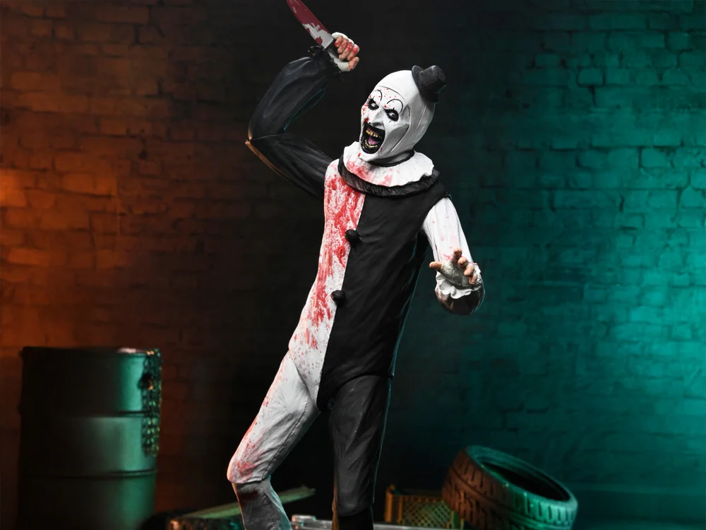 From Damien Leone’s Terrifier 2, NECA brings you this Ultimate Art the Clown action figure—a terrifying tribute to a modern horror icon. Standing in a 7-inch scale, this fully articulated killer clown features blood-splattered deco, dripping in his victims’ blood from his little hat to his clown shoes. This figure includes multiple interchangeable faceplates and hands, and a slew of bloody weapons to add to the collection. The sadistic slasher comes in collector-friendly window box packaging with an opening front flap, featuring artwork by www.creepyduckdesign.com. Bring home this silent, deadly menace to stalk your shelves!