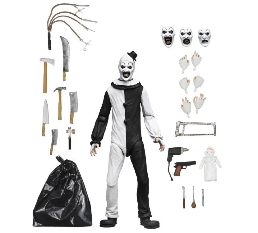 The enigmatic Art the Clown is here to stalk your shelves. The iconic villain from Damien Leone’s Terrifier is getting NECA’s Ultimate treatment. Capturing every eerie detail of the silent slasher, this 7-inch scale articulated action figure includes interchangeable expressions and hands.