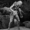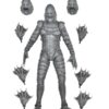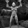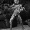 The debut of Universal’s 1954 film The Creature from the Black Lagoon took audiences deep into the Amazon! This 7″ scale Ultimate action figure depicts the mysterious and terrifying Gill-man in extraordinary detail in classic silver screen black and white deco. It comes with three extra pairs of hands, and three interchangeable head sculpts (one with an articulated jaw), Display-friendly window box packaging with opening front flap