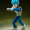 Super Saiyan God Super Saiyan Vegeta that appears in “DRAGON BALL SUPER” has been made into an action figure with some new modeling. Coloring inspired by the reflection of the aura further reproduces the power seen in the show! The head part and boot parts are newly sculpted based on when he appeared in the Space Survival Edition of “DRAGON BALL SUPER”. Vegeta’s coloring is based on his blue shining aura in his Super Saiyan God Super Saiyan form. Pearl coloring is used for his hair. Three types of replacement facial parts are included: screaming, clenching and smirking. 3 left and 4 right replacement hands are also included.