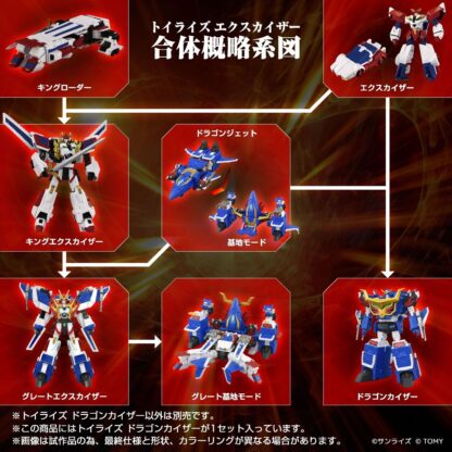 The Takara Tomy T-Spark Dragon Kaiser transforms from jet mode to articulated robot action figure and back again. He can combine with the King Exkaiser figure ( sold separately )