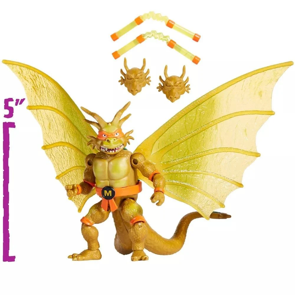 Brace for mutant mayhem! Mikey transforms into the monstrous King Ghidorah in this epic Teenage Mutant Ninja Turtles x Godzilla crossover figure. With three fierce dragon heads, golden scales, and energy-powered nunchucks, Mikey is ready to take on any villain threatening the city—or the multiverse. Standing 5 inches tall with multiple points of articulation, this figure captures the essence of both TMNT’s fun-loving Michelangelo and the raw power of King Ghidorah. Complete with translucent energy weapons and bold collector-style packaging, this Three-Headed Mutant is a must-have for fans of Godzilla, kaiju battles, and Teenage Mutant Ninja Turtles.