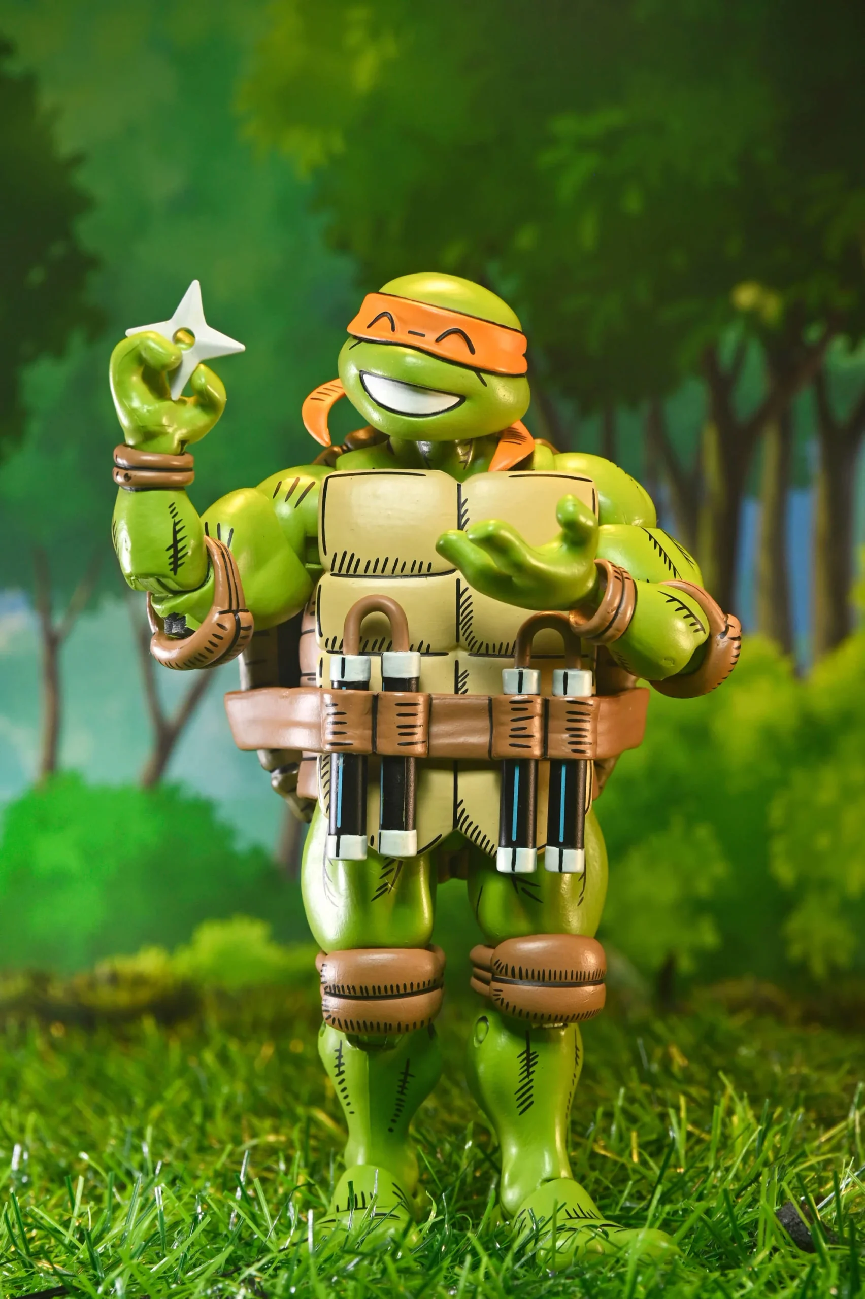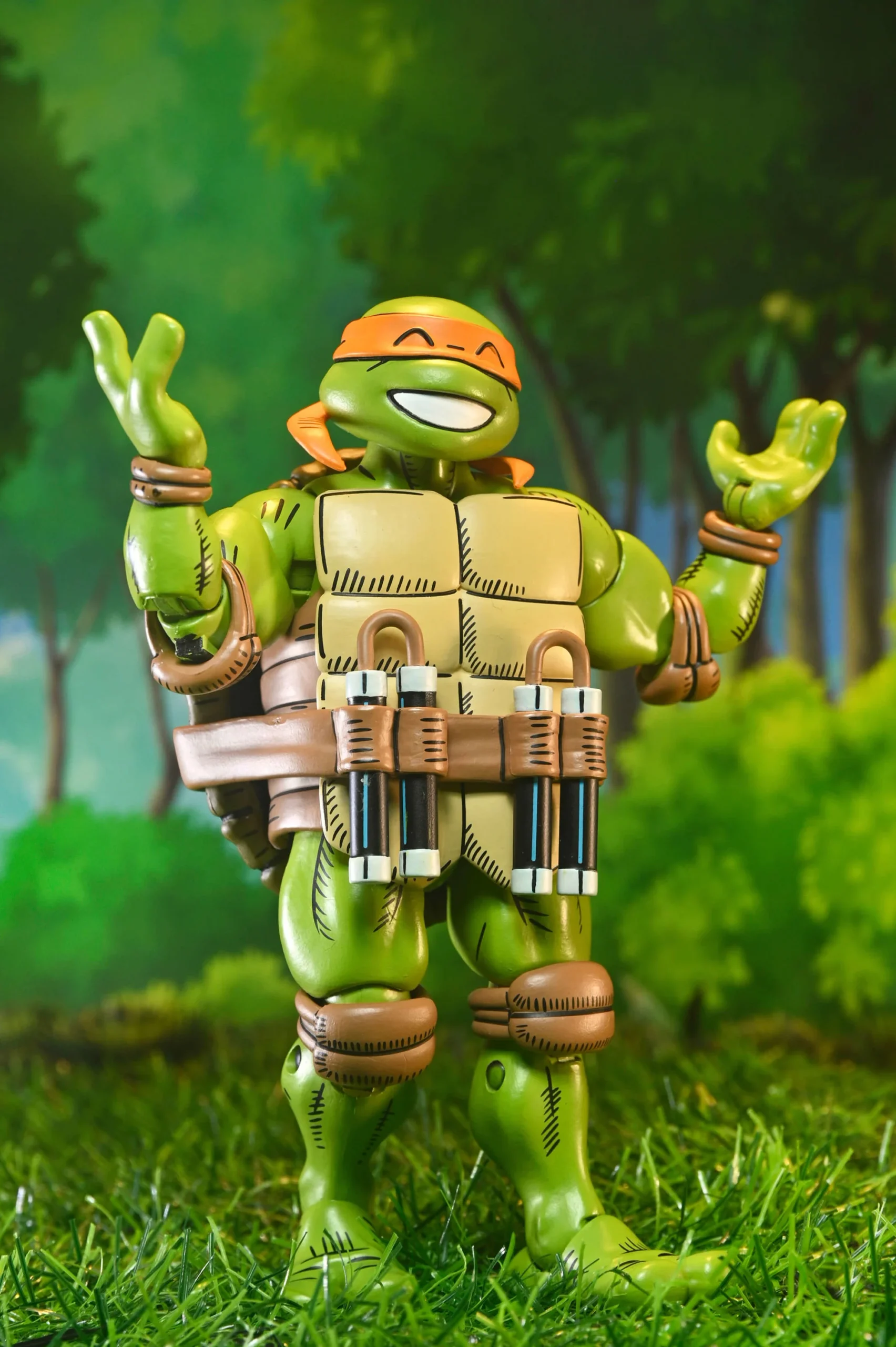 Celebrate over 40 years of Teenage Mutant Ninja Turtles comics and Usagi Yojimbo! Based on the work of legendary artist Stan Sakai and produced in collaboration with Dogu Publishing, this Ultimate Michelangelo features all-new sculpts and authentic, stylized comic book deco. The 7-inch scale NECA action figure includes interchangeable heads and hands and his signature nunchucks. Comes in collector-friendly window box packaging with opening front flap.