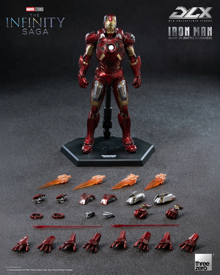Six (6) pairs of interchangeable hands: One (1) pair of fists, one (1) pair of relaxed hands, one (1) pair of shooting hands, one (1) pair of shooting hands to attach the effects, one (1) pair of flight hands, and (1) pair of laser beam fists