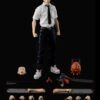 The figure also includes a total of six sets of interchangeable hands and a pair of chainsaw forearms to complete the transformation into Chainsaw Man. Additional accessories include an axe and unarticulated 1/6 scale Pochita. The character’s outfit includes a white shirt, slacks, and a necktie, which are all made of fabric.