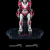 At 8 inches (~20.3 cm) tall, the Transformers Bumblebee DLX Arcee collectible figure features approximately 60 points of articulation, with a die-cast metal frame and LED illuminated eyes. Accessories include a pair of blasters, four pairs of interchangeable hands, and a DLX Action Stand for more dynamic poses.