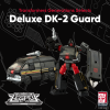 The DK-2 Guard figure is based on the Diaclone Onebox Cherry Vanette toy, which was originally planned to have black deco. The black deco was changed to red for release as Ironhide in 1984. Now, the DK-2 Guard figure is released in the originally-planned deco scheme. This figure converts from robot to van mode in 22 steps. Figure comes with blaster and shield accessories.