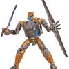 Unleash the primal power of the beasts with this Dinobot collectible figure, featuring a detailed beast mode with intricate molded dinosaur scale texture. Toy converts to Beast Wars-inspired raptor mode in 28 steps and features articulated claws and a posable jaw for realistic velociraptor poses. Tail detaches from raptor mode during conversion and becomes his Cyber Slash tail weapon and sword accessories. No matter the weapon or the foe, Dinobot always fights with honor.