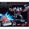 The Transformers Masterpiece Movie Series Optimus Prime MPM-4 figure is perfect for fans and collectors alike, with features inspired by the explosive 2007 Transformers live action movie. The figure showcases Earth’s greatest protector with impressive attention to detail. Imagine unleashing Optimus Prime action with articulated hands, interchangeable mask, Matrix of Leadership accessory, and classic weapon accessories. Converts from robot to truck mode in 43 steps.