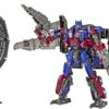 This Studio Series 44 Leader Class Optimus Prime figure features vivid, movie-inspired deco and converts from robot to truck mode in 44 steps. Truck trailer converts into jetwing tech to form Jetwing Optimus Prime. Remove backdrop to showcase Optimus Prime in the Battle of Chicago scene. Includes 5 detailed accessories: 2 blasters, 2 Energon weapons, and shield.