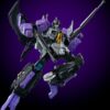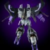 Transformers MDLX Skywarp is approximately 7.8″ (20 cm) tall, with approximately 50 points of articulation and a die-cast metal frame. Accessories include two interchangeable faceplates, one of which is a newly added creepy face, a detachable wing system, two detachable cannons, two detachable blades, and four pairs of interchangeable hands.