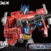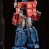 DLX Optimus Prime stands 10 inches (25.4cm) tall and features approximately 50 points of articulation, a die-cast metal frame, and LED illuminated eyes and chest cavity. Accessories include Ion Blaster, Energon Axe, Energon Shield, a total of five pairs of interchangeable hands, and a DLX Action Stand for various expressive poses. Optimus Prime also features a finely-detailed paint application that showcases the war-torn weathered look as seen in the Transformers: War For Cybertron Trilogy.